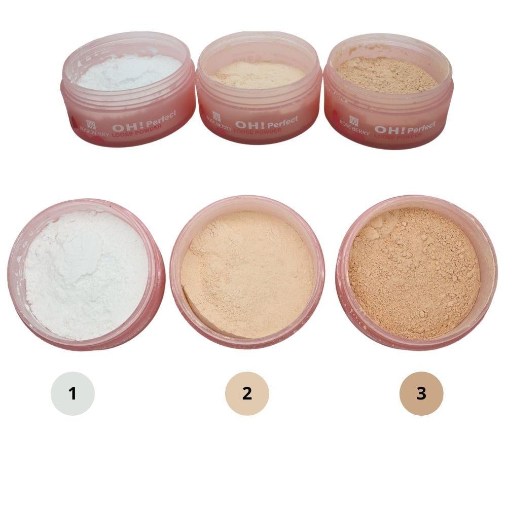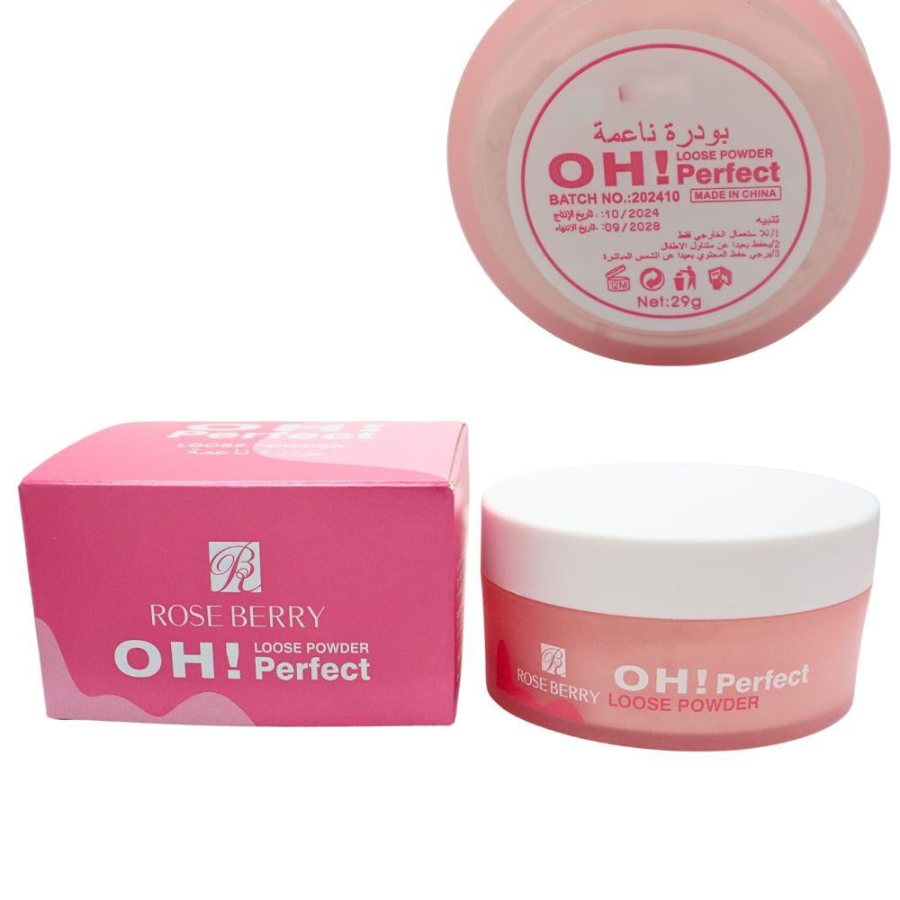 تقدم روز بيري OH Perfect بودرة ناعمة (Loose Powder) مثالية لتثبيت المكياج وإضفاء لمسة نهائية رائعة. تتميز هذه البودرة بخفة وزنها وملمسها الحريري الذي يمنح البشرة إشراقة طبيعية دون التسبب في انسداد المسام.