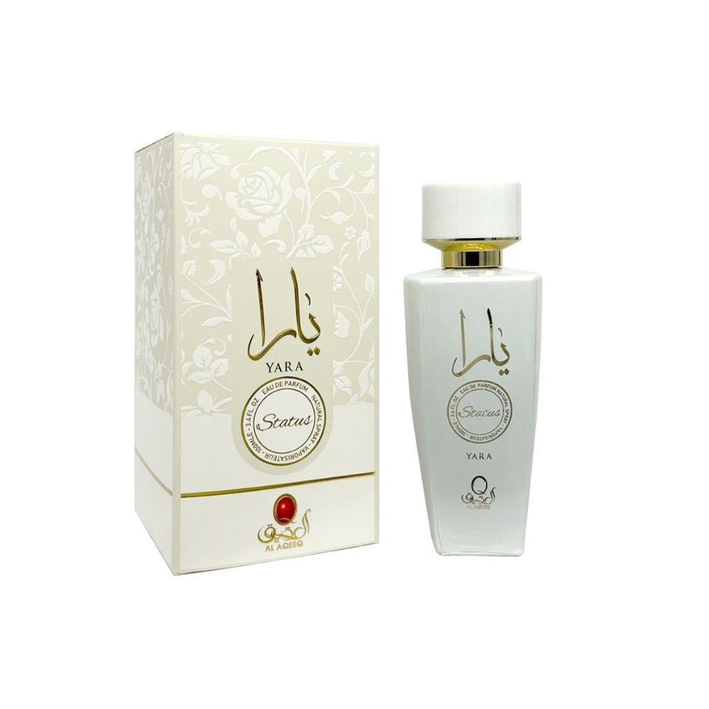 استمتعي بعبير أنثوي ناعم وأنيق مع عطر يارا. هذا العطر يتميز بتركيبة زهرية فاخرة تجمع بين الرقة والأناقة. يأتي العطر في زجاجة أنيقة باللون الأبيض الذهبي، مما يعكس طبيعته النقية والأنيقة.
