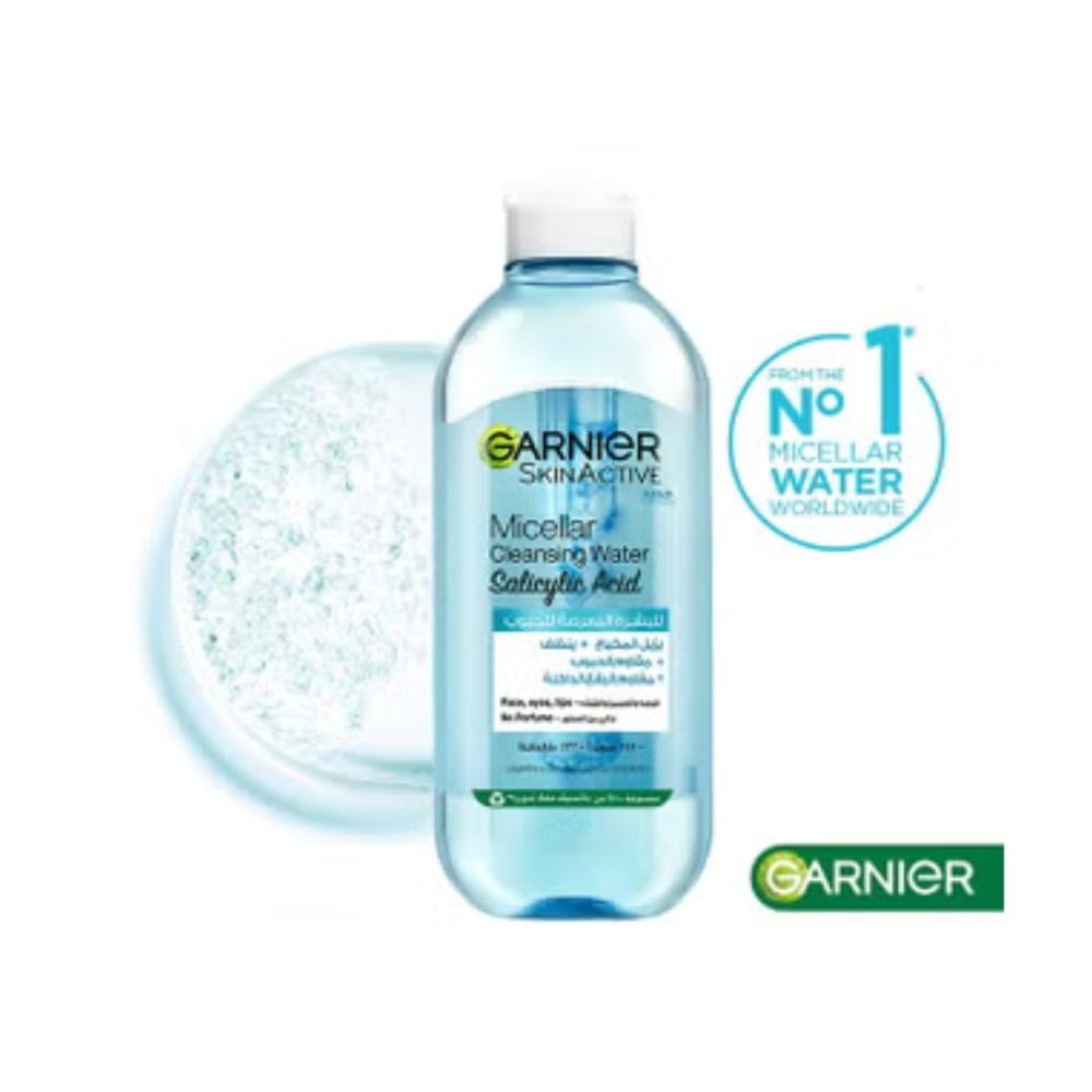 غارنييه مزيل مكياج منضف مائي ميسيلار بحمض الساليسيليك 400 مل للبشرة المعرضة للحبوب