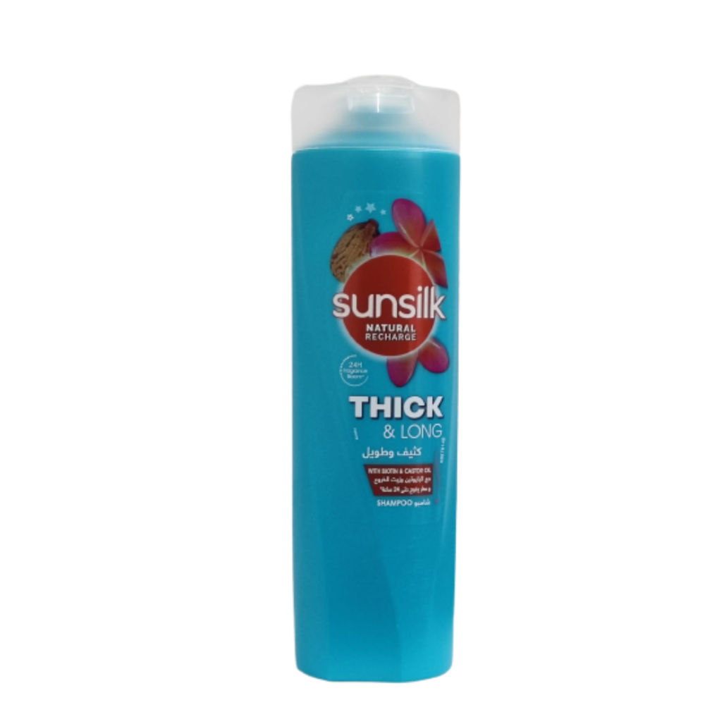 صانسيلك شامبو كثيف وطويل غني بالبايوتين (وهو فيتامين مثبت لنمو الشعر وتغذيته) و زيت الخروع;
