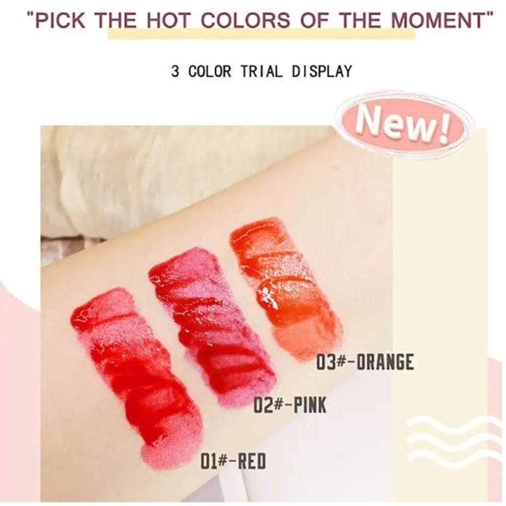 These lip glosses have a glossy finish, are waterproof and long-lasting.