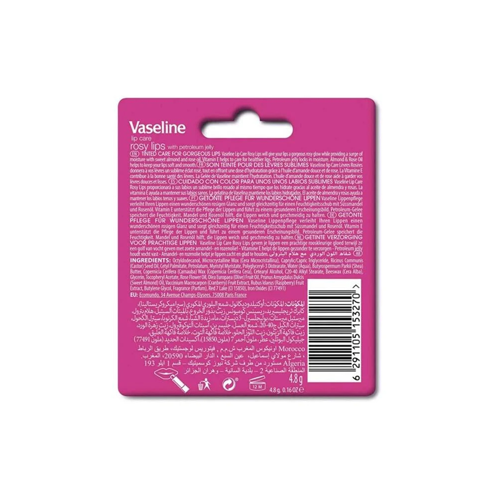 Vaseline Rosy Lip Therapy Rose is a rich, pink lip balm that gives your lips a healthy color and long-lasting moisture.
